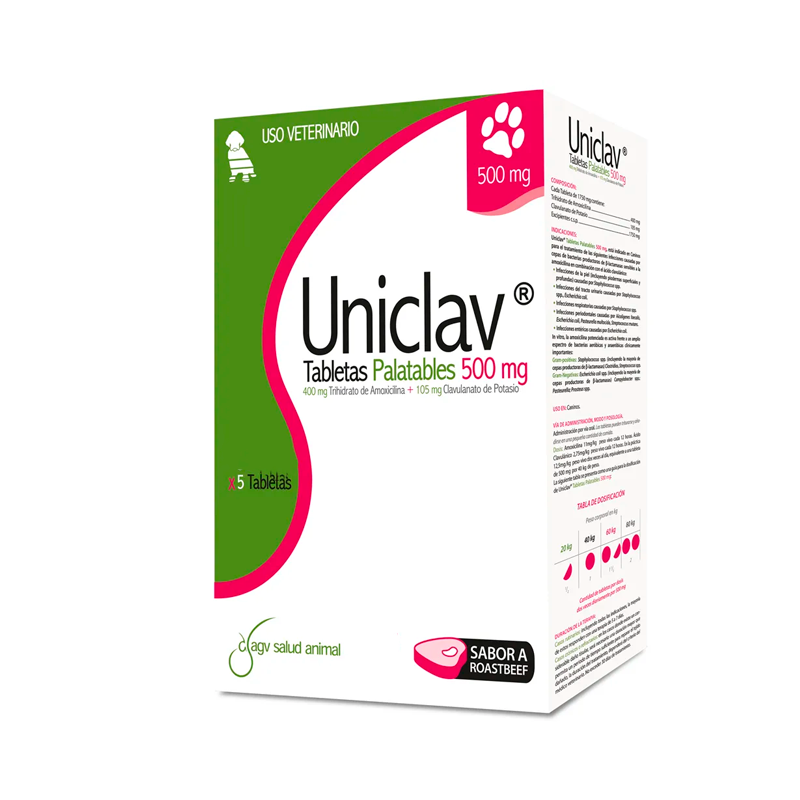 UNICLAV 500 MG PALATABLE X 5 TAB