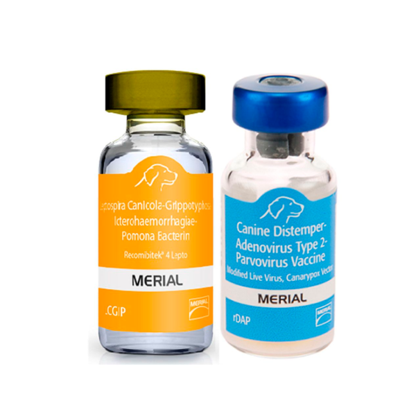 Vacuna contra distemper canino (virus vector recombinante de la viruela del canario), adenovirosis canina y parvovirosis canina (virus activos modificados) y Leptospirosis canina por Leptospira interrogans serovariedades Canicola, Icterohaemorrhagiae, Pomona y Leptospira kirschneri serovariedad Grippotyphosa (bacterina).